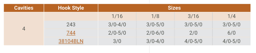 - Size 1/16, 1/8, 3/16, 1/4 oz.