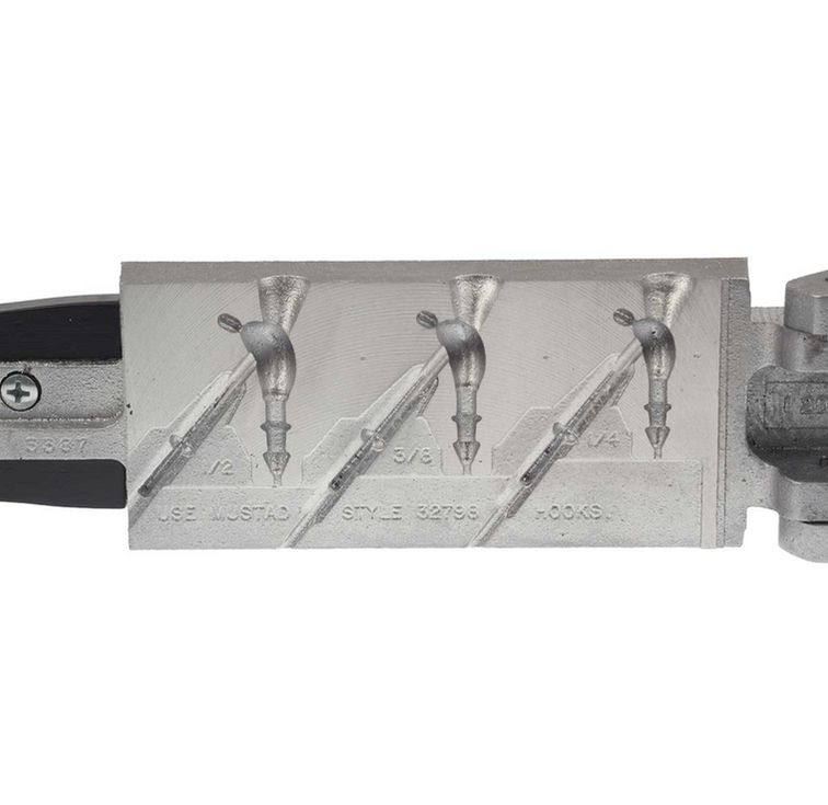 - Voted Mr. Popular by its classmates, a very useful all-purpose Bass jig. The 3387 utilizes our new double holder collar and the premium Mustad 32798 turned eye, wide gap, black nickel hook, making it the ideal choice to pull over the snags and still grab a hold of Mr. Bucket Mouth. Mold in Y-guards or glue them in later by substituting base hole pins. Relax, the pins are included. One less thing to worry about. 1/8 x 1" base hole pin (one per cavity included).