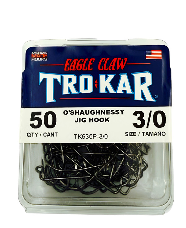 - The TK635P gives DIY tackle enthusiasts a side eye, 90-degree leg, O'Shaughnessy Jig Hook. The forged shank adds strength without needing a heavier wire. The triple-sided Tro Kar Point penetrates past the barb with minimal pressure, even with larger diameter wire hooks.