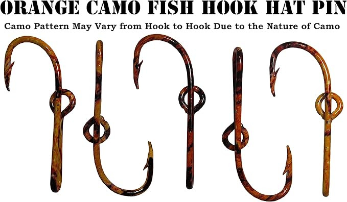 Orange Camo Eagle Claw Fish Hook Hat Pin